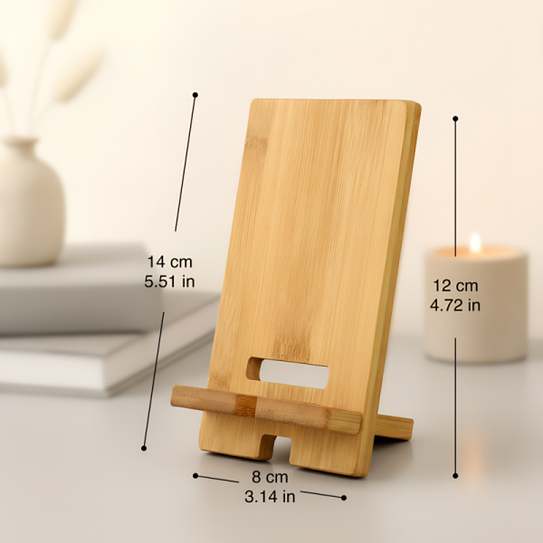 Mantenha seu dispositivo na posição vertical enquanto aprecia a tela. O suporte de madeira Ortorex segura o seu telefone com firmeza em qualquer ambiente. Projetado para o seu conforto, ajuda a usar o telefone sem ângulos desconfortáveis. A superfície de bambu natural é elegante e combina com qualquer mesa.