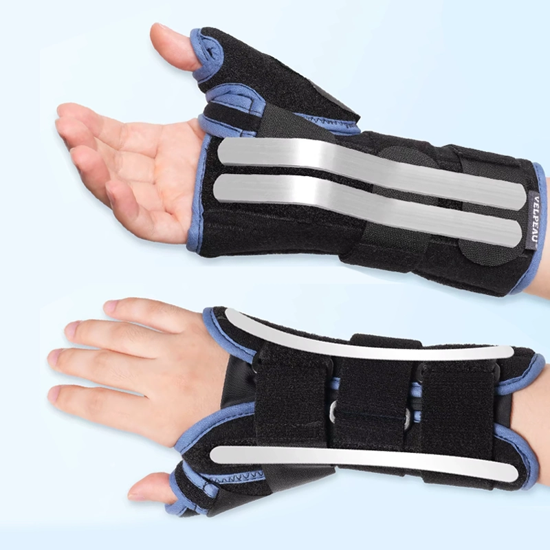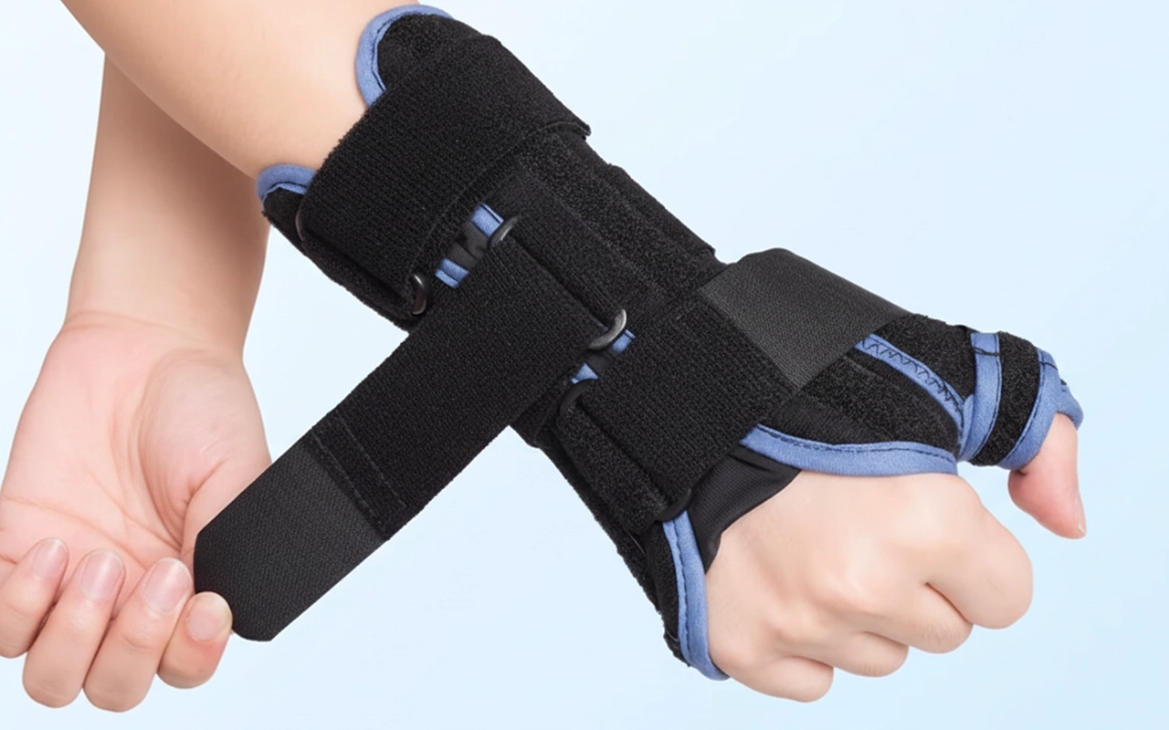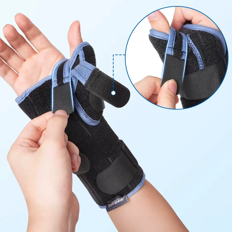 Três tiras oferecem um ajuste seguro para qualquer tamanho de punho. O suporte para o polegar ajusta-se facilmente sem limitar os movimentos diários.